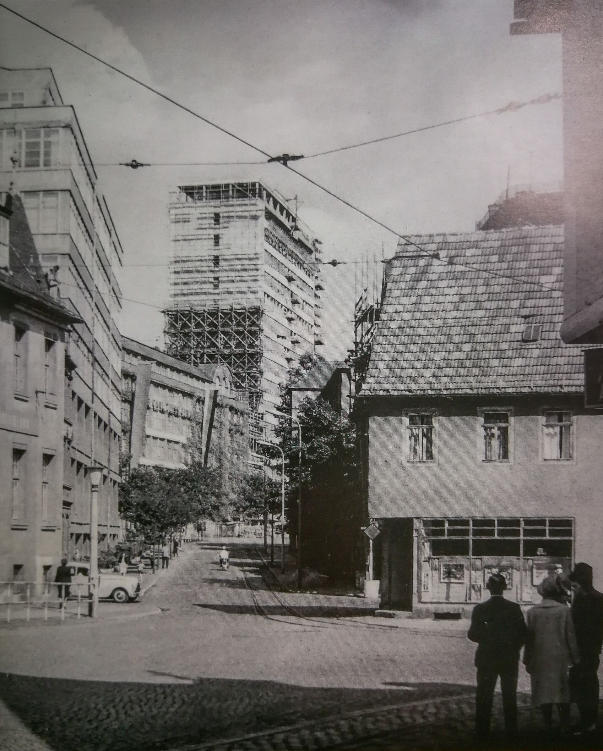 Mitten auf dem Engelplatz vor dem Hauptpostamt befand sich bis 1964 die sogenannte Kunstinsel. Sie fiel leider der geplanten, sozialistischen Neugestaltung der Innenstadt zum Opfer, welche aber, Gott sei es gedankt, nicht in diesem Umfang umgesetzt wurde.