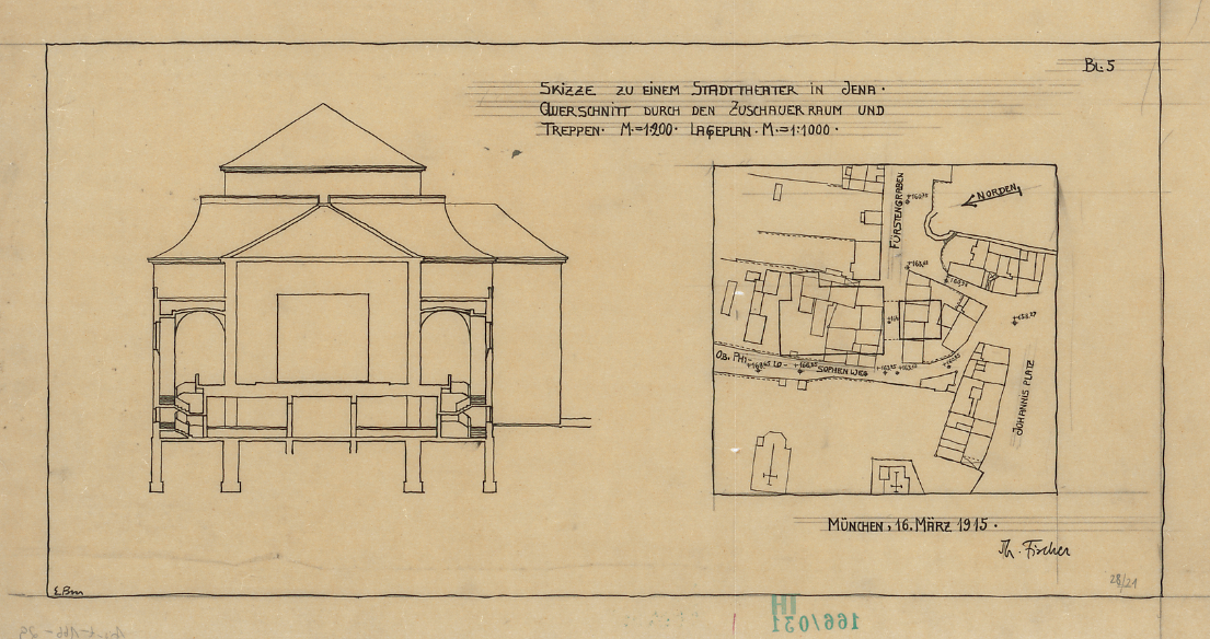 Im Jahr 1915 plante der Architekt Theodor Fischer (Universitätsneubau) im Auftrag der Stadt einen Neubau eines Stadttheaters, welcher aber nie zur Ausführung kommen sollte da man sich nicht auf einen Standort einigen konnte.