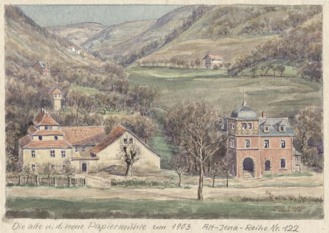 Aus der Urkunde geht hervor, dass die alte Nasenmühle bestehen bleiben sollte (wohl um die Abgaben nach Kapellendorf und Jena weiterlaufen zu lassen) und die neue Papiermühle daneben errichtet werden solle.