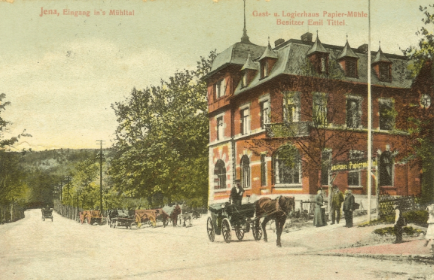 1891 beauftragte Emil Tittel den renommierten Jenaer Architekten Ludwig Hirsch mit dem Bau eines neuen Gasthauses, das bereits ein Jahr später fertig gestellt war.